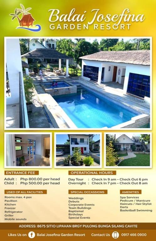 Private resort in tagaytay for big groups. We are situated in quite neighborhood 20 mins away from Tagaytay city. Extra guests after 16 will be charge 500 php per headnight. Guests can reach Tagaytay attractions and have fun in the resort with their own private pool.